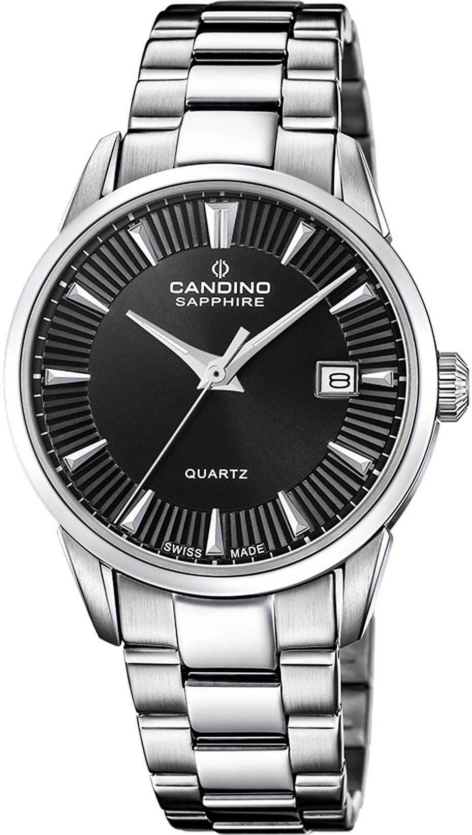 Pánské klasické bateriové hodinky s vodotěsností 100 metrů a safírovým sklíčkem. Na ocelové pouzdro o průměru 39,5 milimetru plynule navazuje třířadý ocelový náramek. Černý číselník s indikací data upoutá pozornost svou texturou, do níž jsou vkusně zasaze