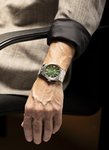 Pánské klasické bateriové hodinky s vodotěsností 100 metrů a safírovým sklíčkem. Na ocelové pouzdro o průměru 43 milimetrů plynule navazuje třířadý ocelový náramek. Zelený číselník s indikací data upoutá pozornost svou texturou a gradientem.