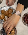 Dámské bateriové hodinky v klasickém stylu na ocelovém náramku s ocelovým pouzdrem o průměru 35 milimetrů. Strukturovaný číselník v růžové barvě s ukazatelem data je chráněn safírovým sklem. S vodotěsností 100 metrů jsou hodinky vhodné pro plavání a šnorc