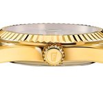 Pánské klasické automatické hodinky na ocelovém náramku se zlatou PVD úpravou. Stříbrný číselník s indikací data je chráněn safírovým sklem odolným proti poškrábání. Hodinky disponují vodotěsností 100 metrů umožňující plavání. (F20092/1)
