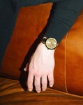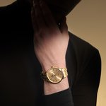 Klasické pánské hodinky zlacené speciální technikou PVD. Ciferník obsahuje hladké segmenty a ručičky. Samozřejmostí je také nezbytná datumovka na třetí pozici. (F20513/3)