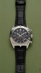 Pánské quartzové sportovně-elegantní hodinky na koženém řemínku disponují funkcí stopek, indikací data a vodotěsností 100 metrů. Černý texturovaný číselník s červenými ručkami chrání safírové sklo.